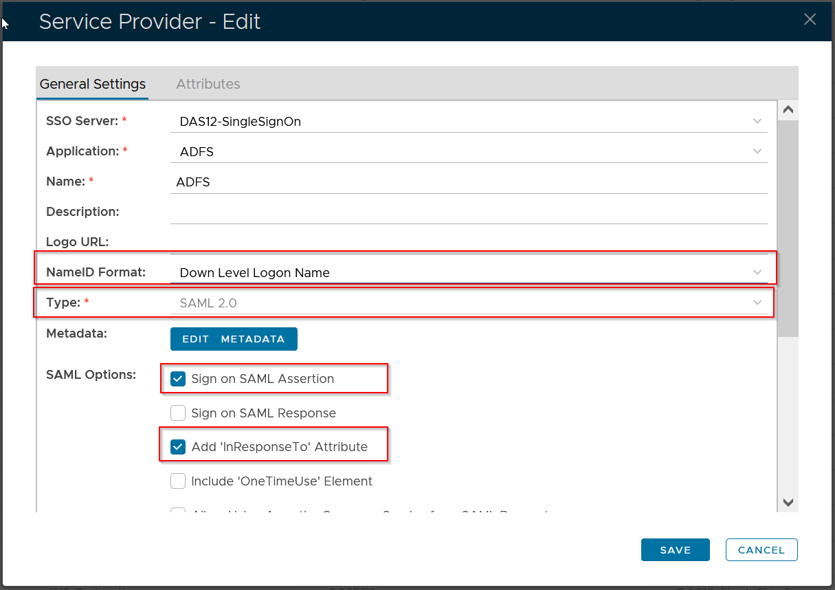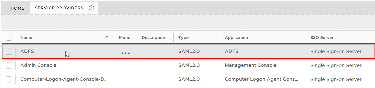 | SSO Server | select the SSO server to which the ADFS will be connected, e.g."Single Sign-On Server" |