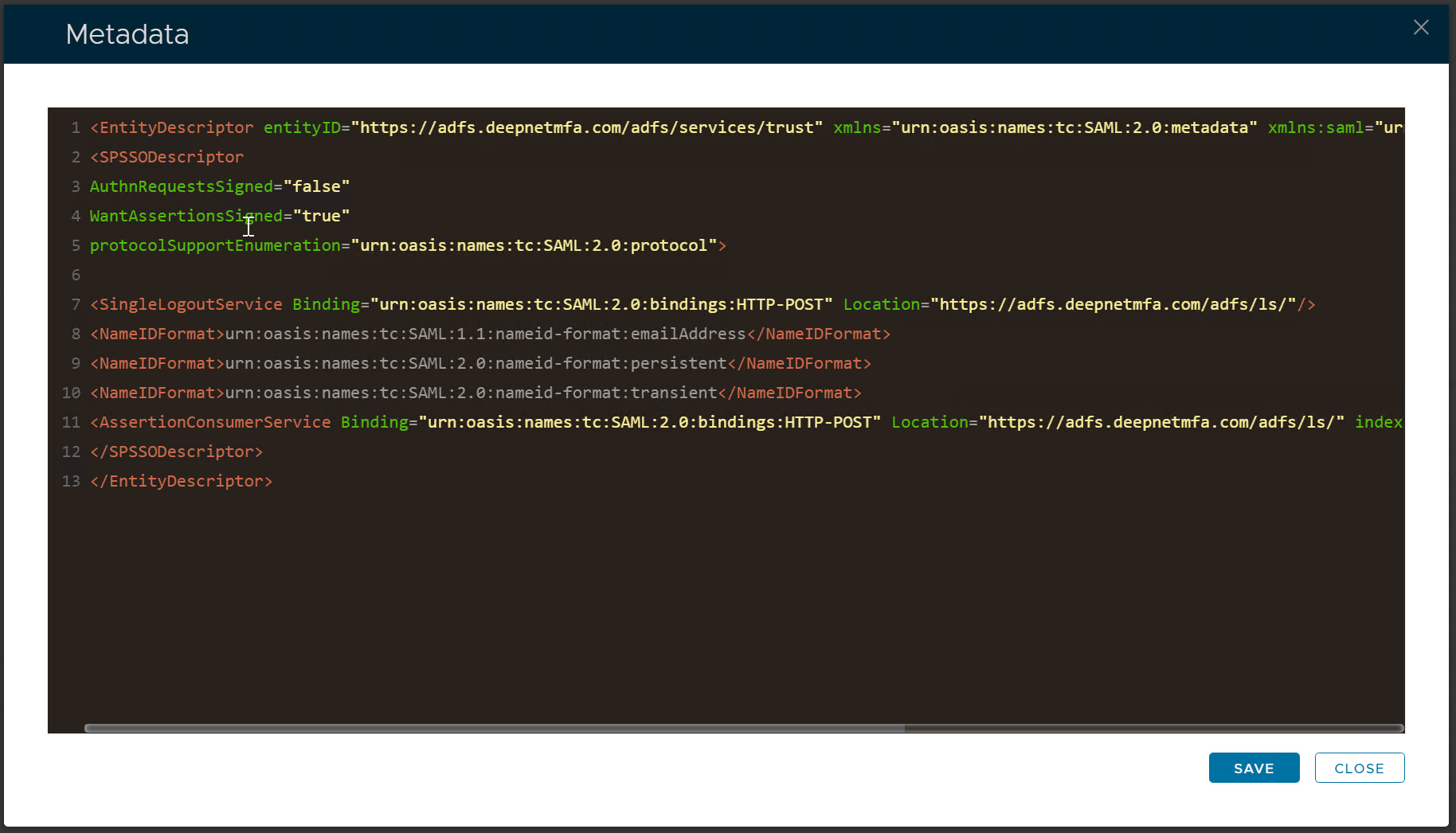 Replace "your-adfs-address" with the address of your ADFS server, e.g: adfs.deepnetmfa.com