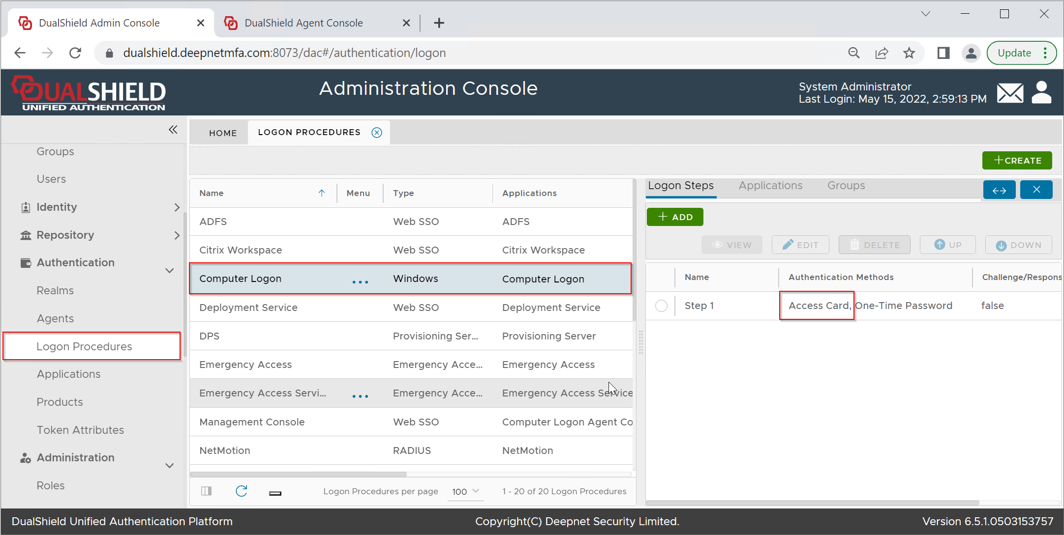 In the example below, we add Access Card into the logon procedure of Computer Logon as the second factor