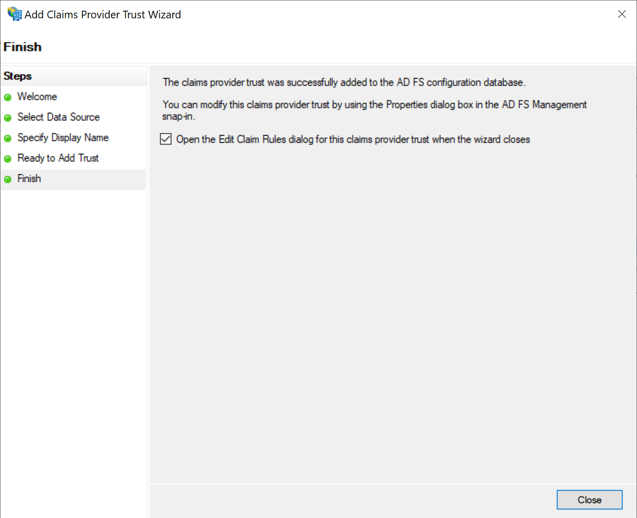This will initiate the Add Claims Provider Trust Wizard.