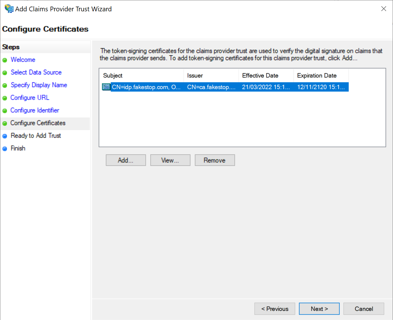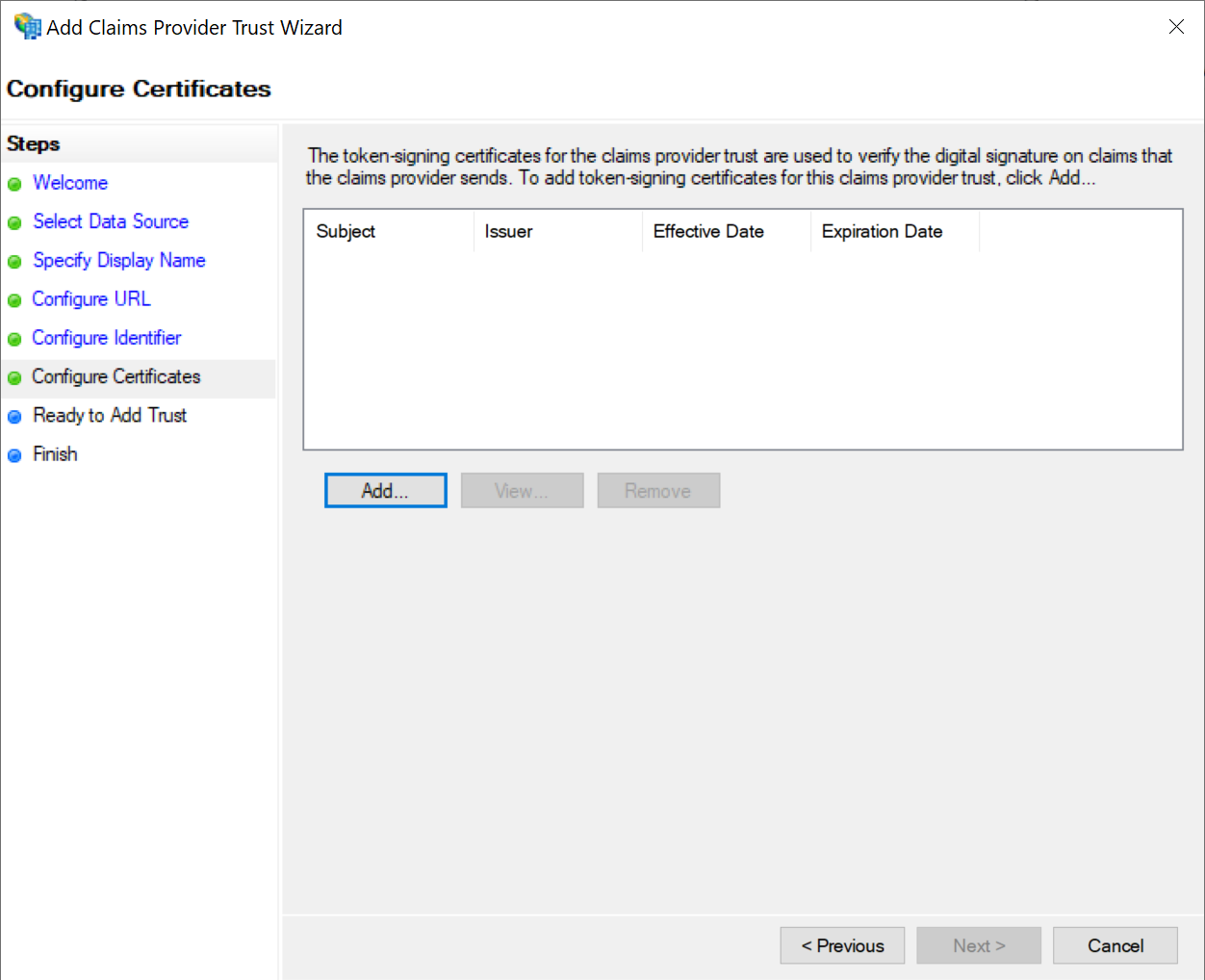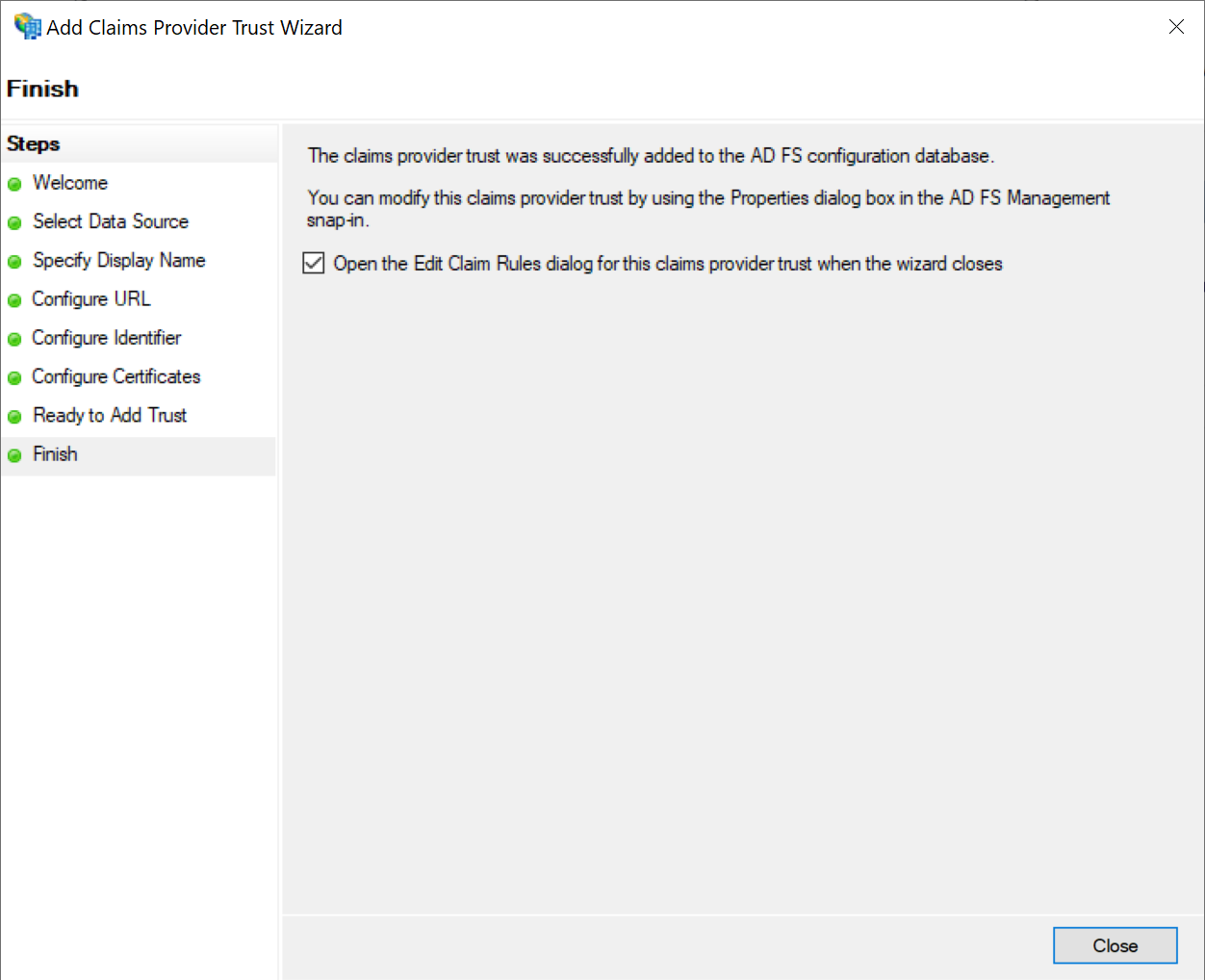 This will initiate the Add Claims Provider Trust Wizard.