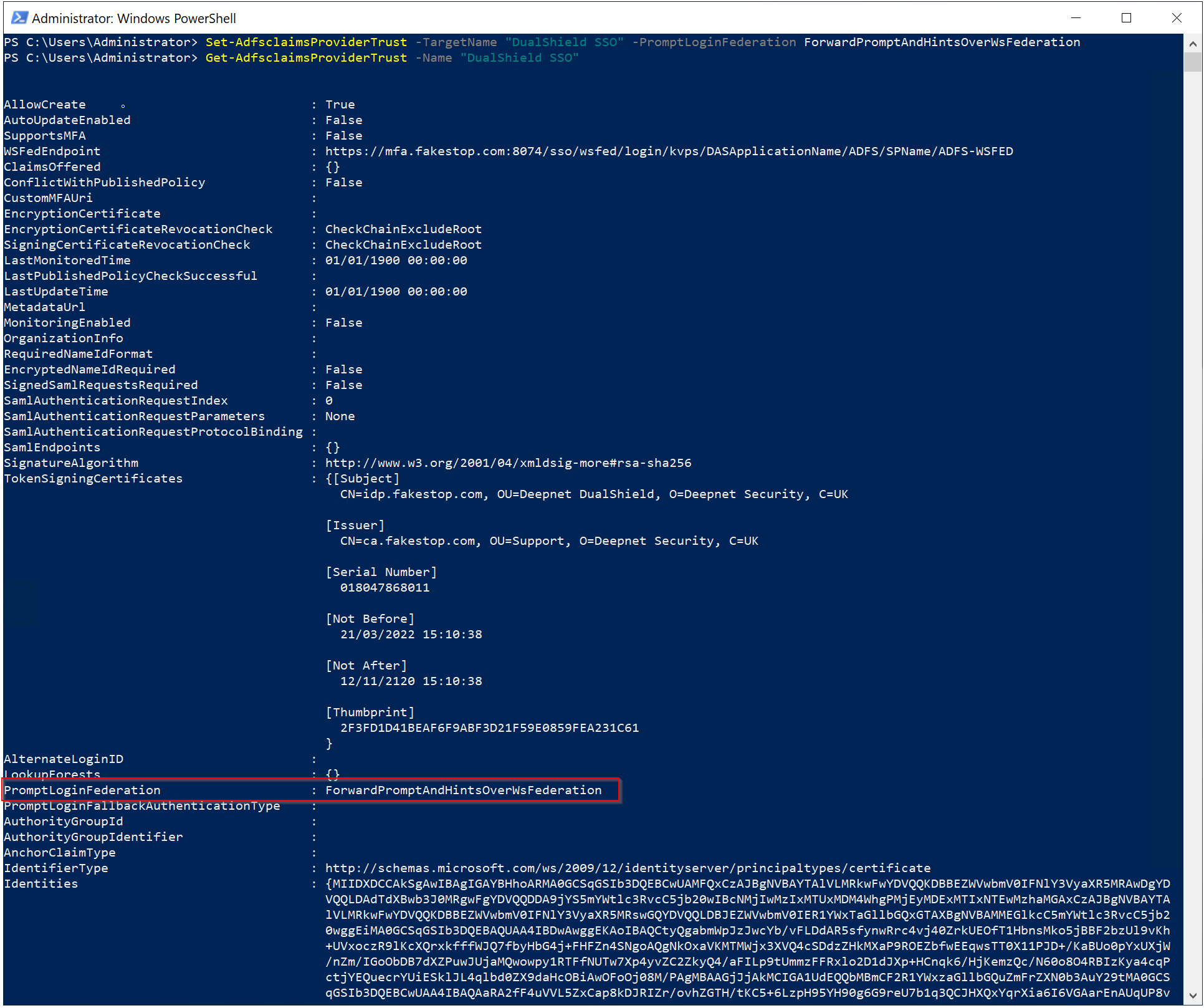 Launch Windows Powershell on the ADFS server, and enter the command below