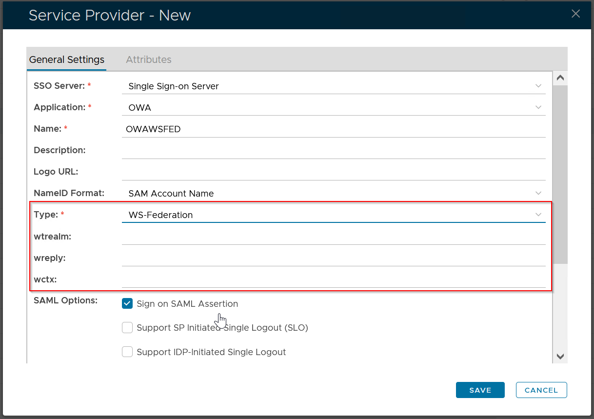 Important: leave "wtrealm" and "wtreply" empty