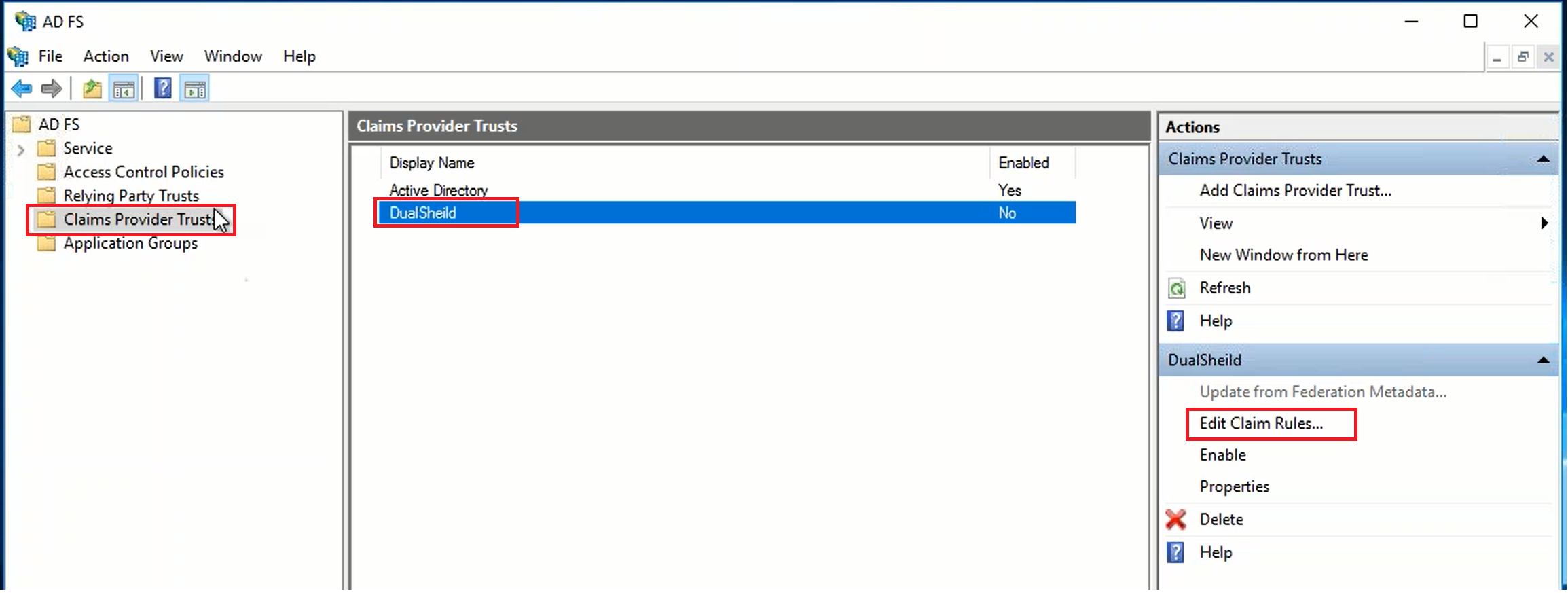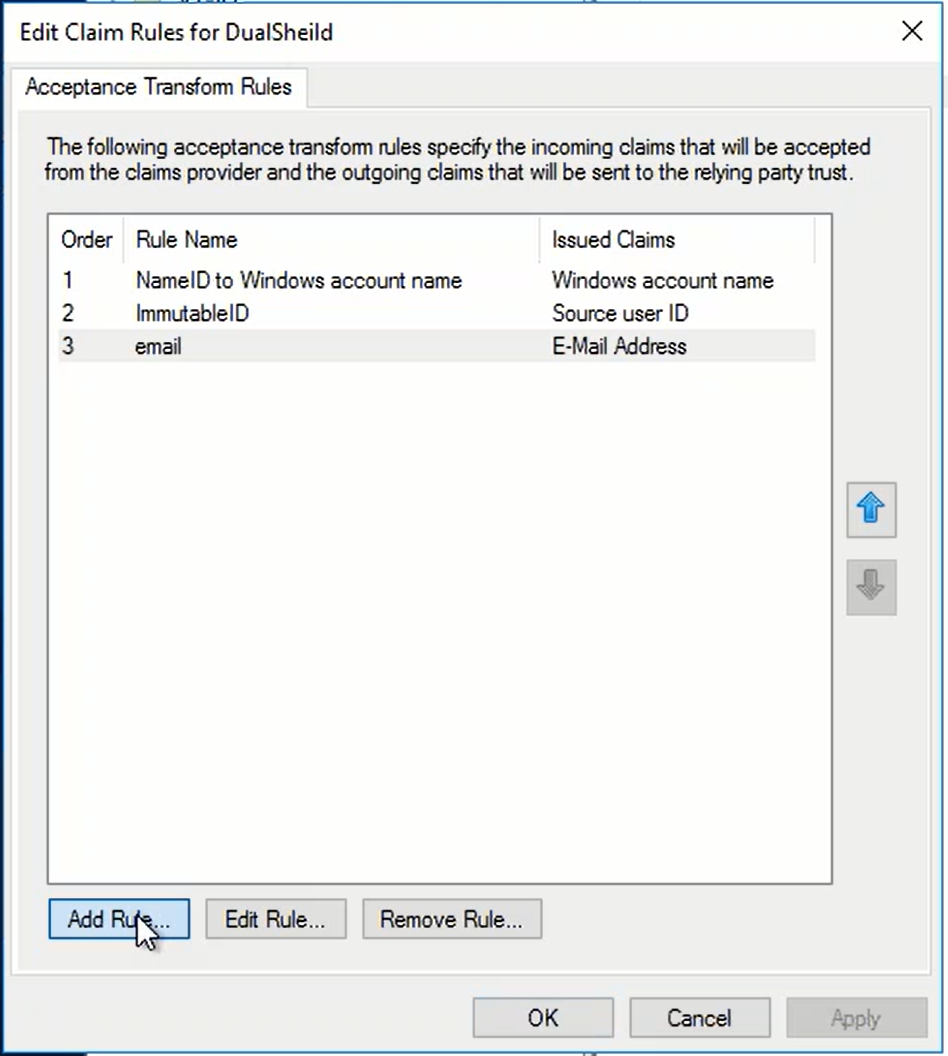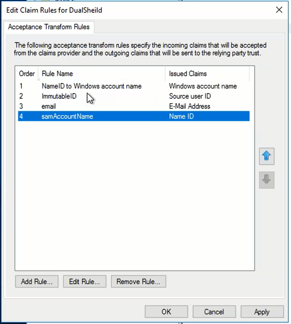 Now, if the Claims Provider for this Relying Party is changed from AD to DualShield, then you need to get "SAM-Account-Name" from DualShield and mapped it to "Name ID"