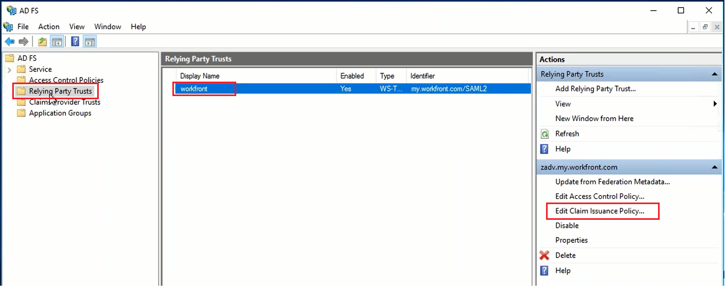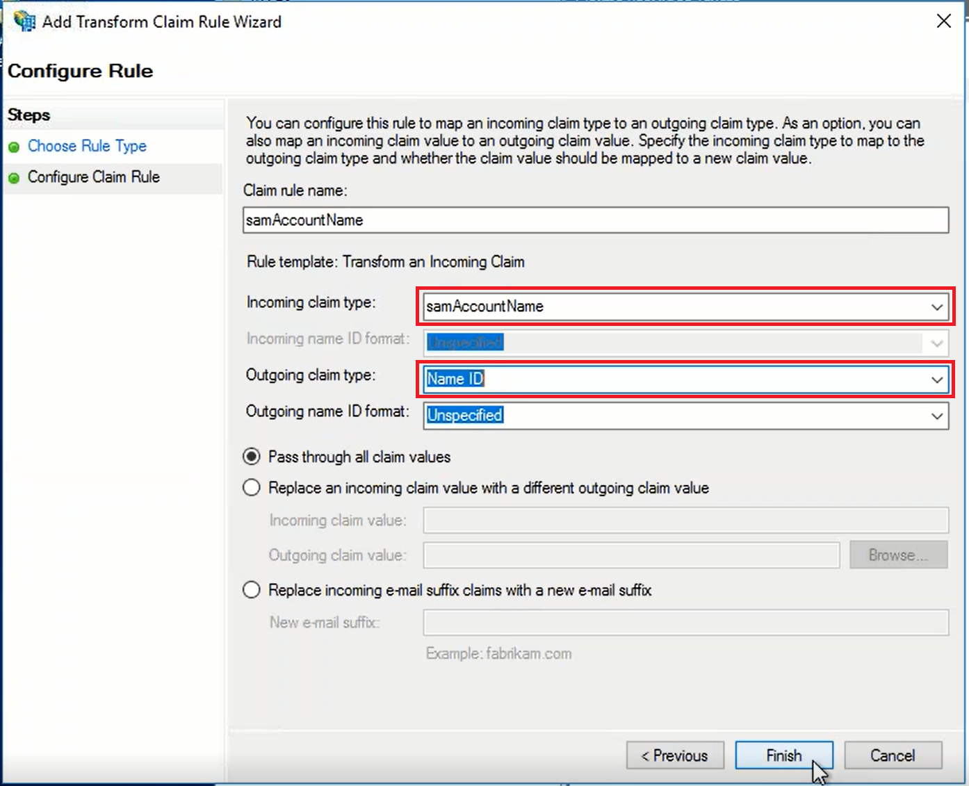 The attribute "SAM-Account-Name" is an AD attribute, and it is mapped to "Name ID" as required by the Relying Party.