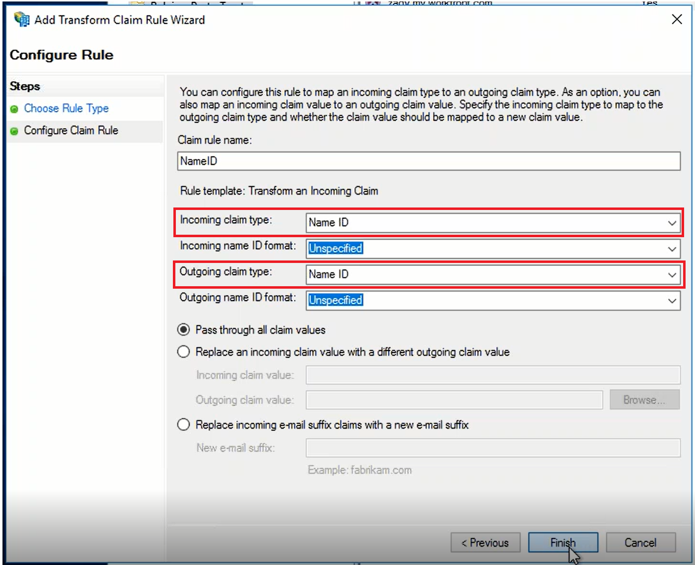 3. Claims Provider Attribute → Relying Party Attribute: In ADFS, the Relying Party receives the attribute, i.e. "Name ID". It transform this incoming claim to an outgoing "Name ID" attribute