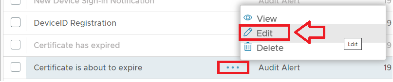 The alert can be edited by left clicking on the context menu of the alert and selecting "Edit";