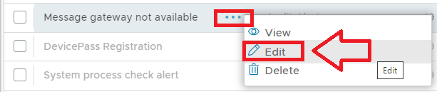 The alert can be edited by left clicking on the context menu of the alert and selecting "Edit";