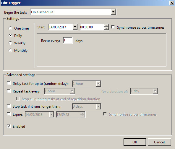 - Open Windows Task Schedule and create a Task. Provide Name and Description.
