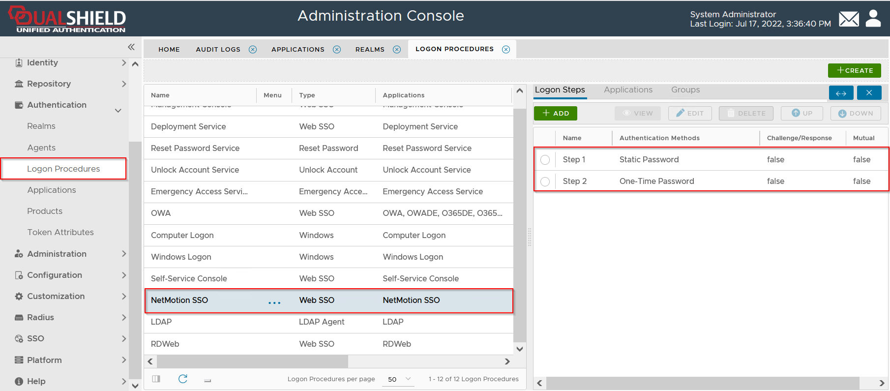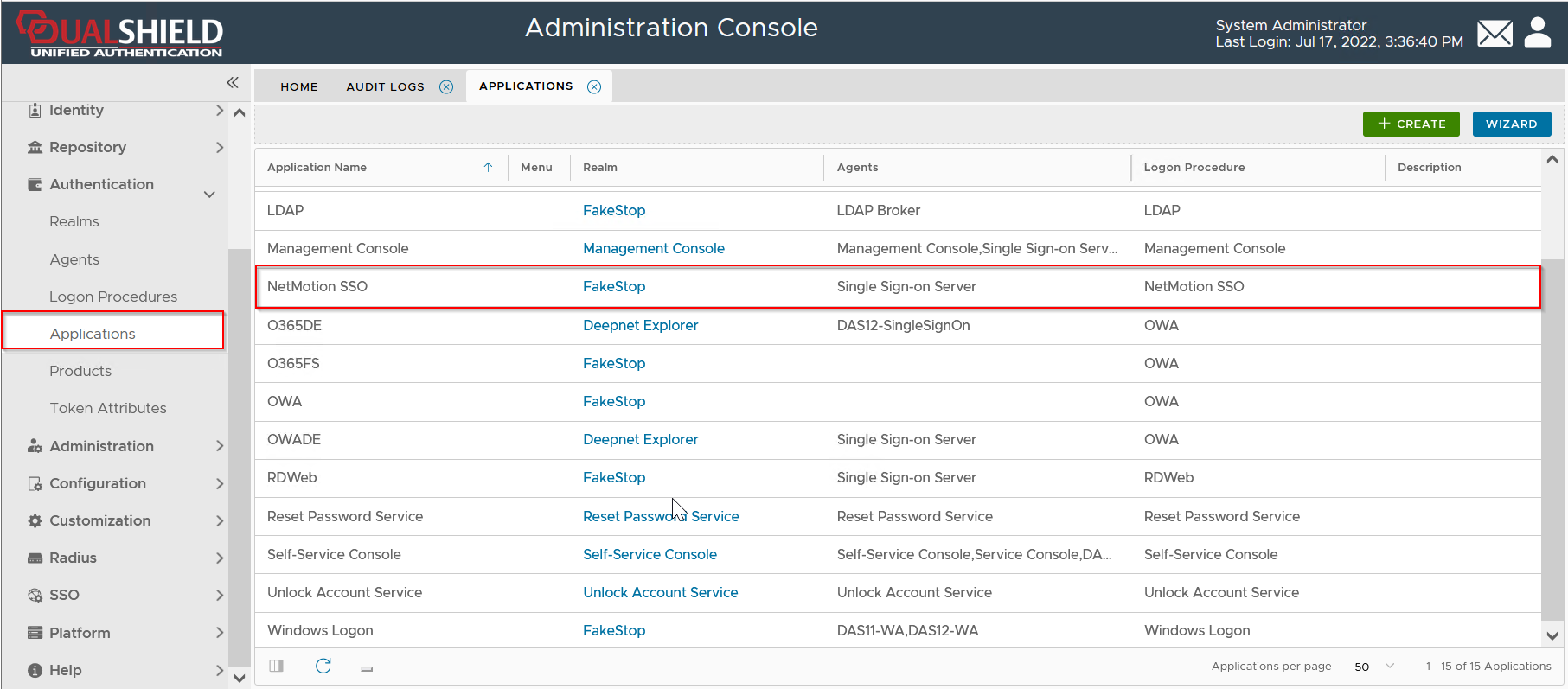 The first step to set up SAML integration with NetMotion is to create an application for NetMotion in your DualShield server.
