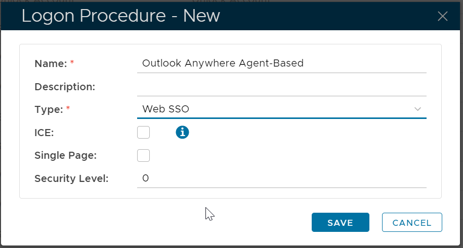 For Outlook Anywhere Agent-Based Authentication, you must create a logon procedure in the type of Web SSO.