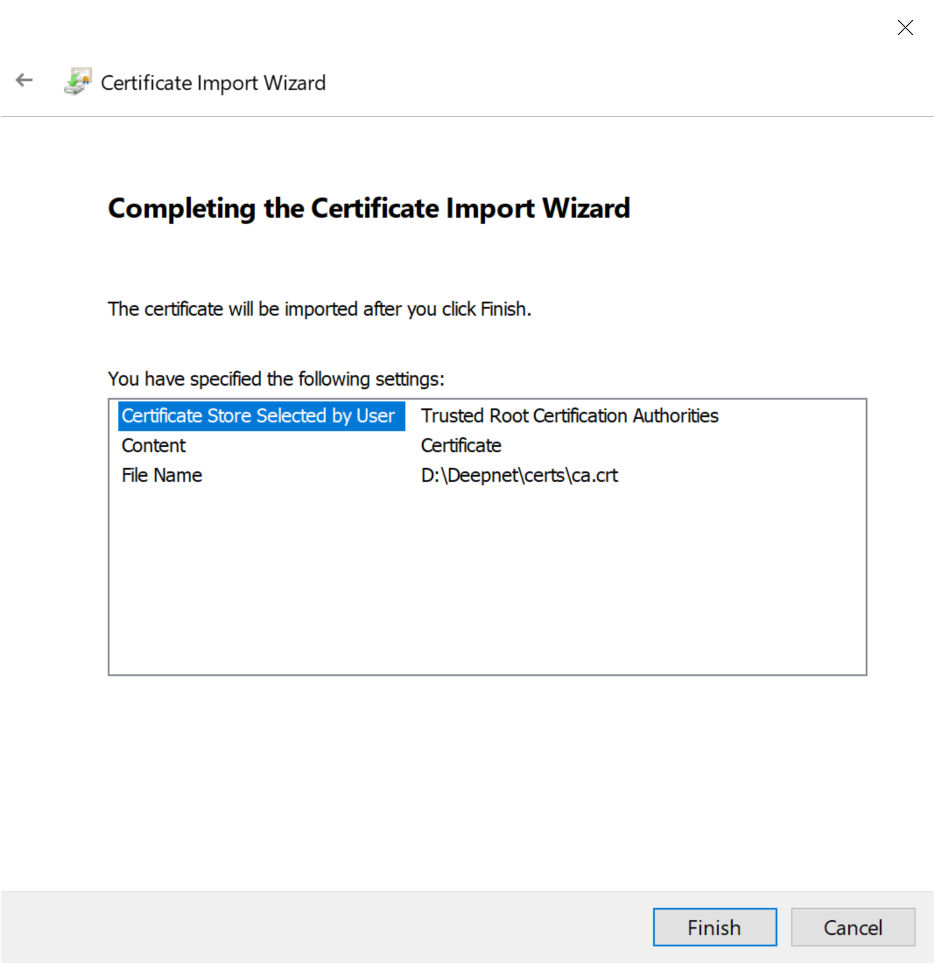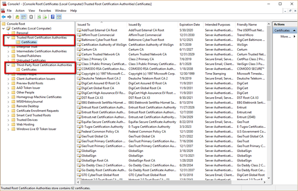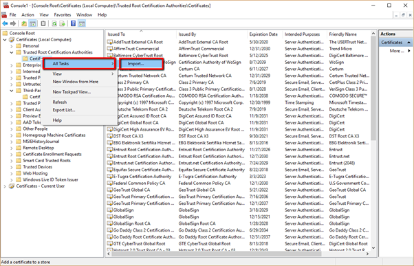 Then, you can import the CA certificate into the Root Certificate Stores.