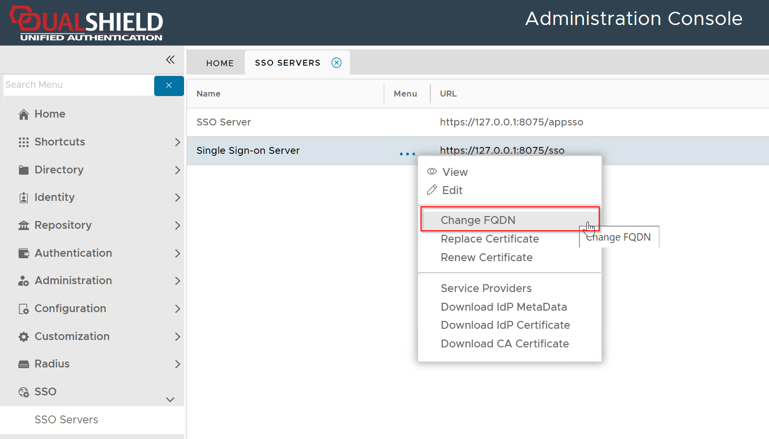 Select a new SSL certificate for the new FQDN, or use a self-sign certificate
