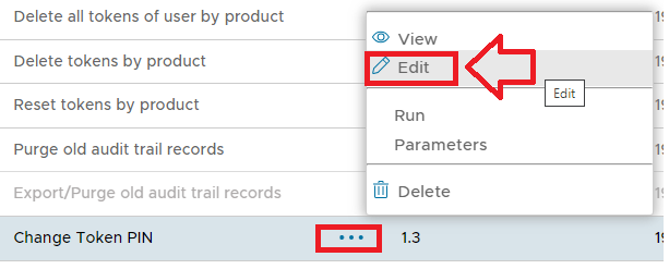 The task parameters are used by the task script to determine which tokens are to be deleted and are edited by left clicking on the context menu of the task and selecting "Parameters";