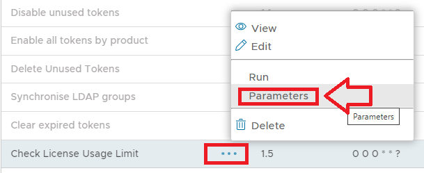 To access the task parameters left click on the context menu of the task then select "Parameters";