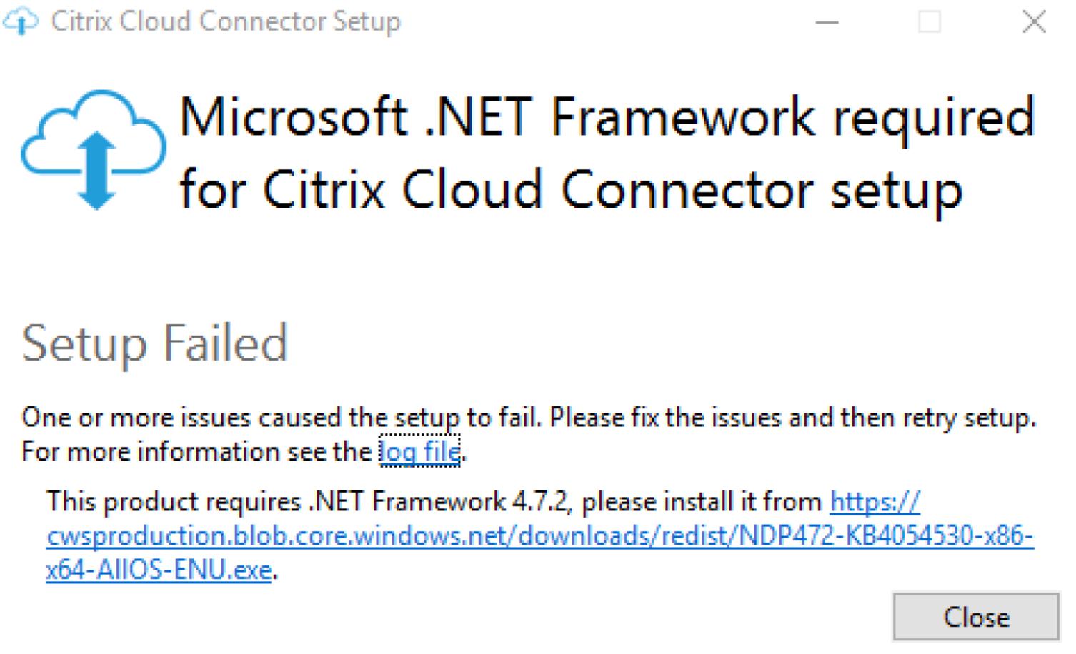 • If you get the following error You will need to click on the link contained in the message to download and install .NET Framework 4.7.2 first