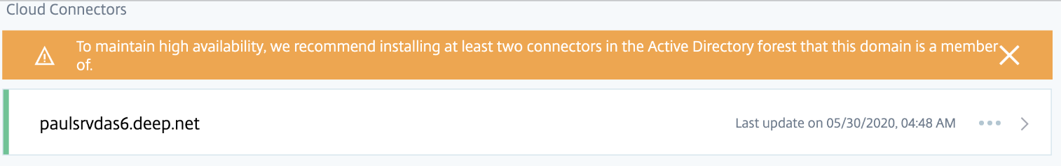 Do not install the Cloud Connector, or any other Citrix components, on an Active Directory domain controller.