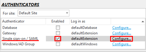 Under Authenticators enable Single Sign-on / SAML
