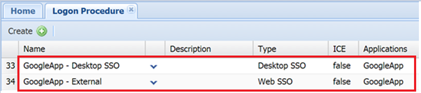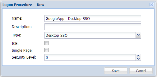 The next step is to create a logon procedure for the internal logon. This time, we need to select the "Desktop SSO" as the type.