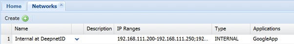 - Left click the context menu of the newly create network, i.e. (Internal at DeepnetID), and select the "Applications", such as "GoogleApp"