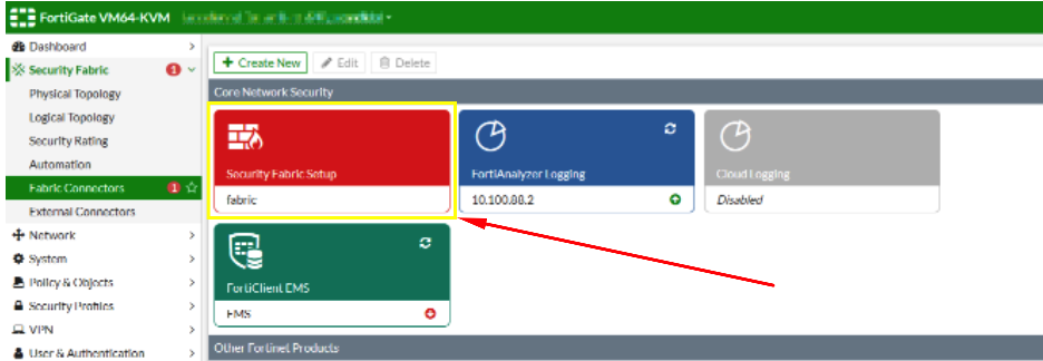 Go to Security Fabric > Fabric Connectors and double-click the Security Fabric Setup card.