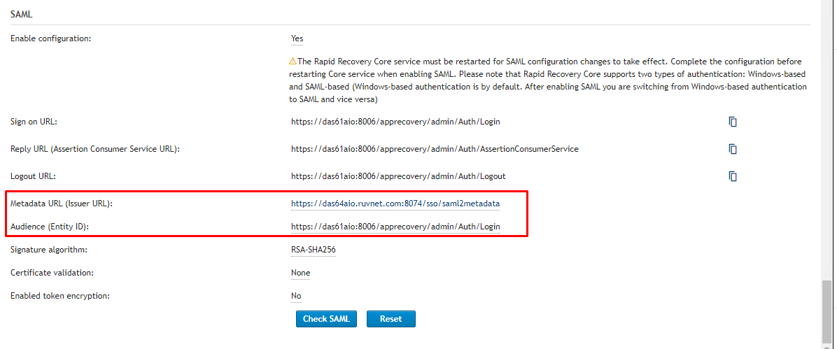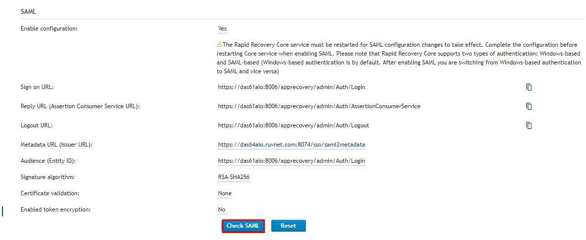 Adhering to the warning above you should first test before committing. Therefore before doing anything else click the Check SAML button below to test.