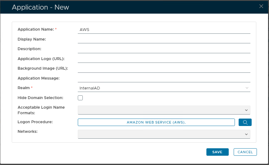 You need to create an application in your DualShield for AWS, and its associated properties including realm, logon procedure etc.