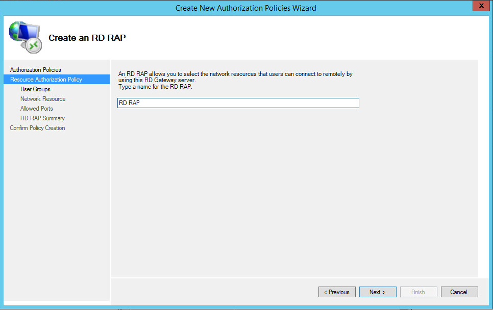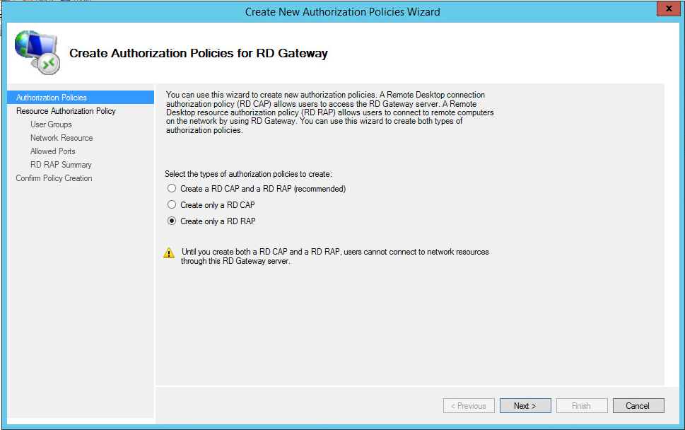 3. Select "Create only a RD RAP", and click "Next".