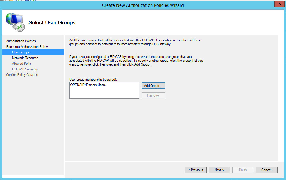 5. On this page you will set the user groups who are allowed to connect through this gateway.