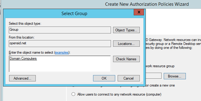 • computer groups that users are allowed to connect through this RD gateway
