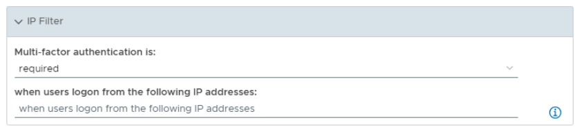 The option "when users logon from the following IP addresses" allows you to restrict the previous "Multi-factor authentication" selection to apply to specified IP addresses.
