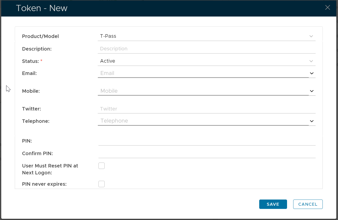 Click the SAVE button to create a new T-Pass token