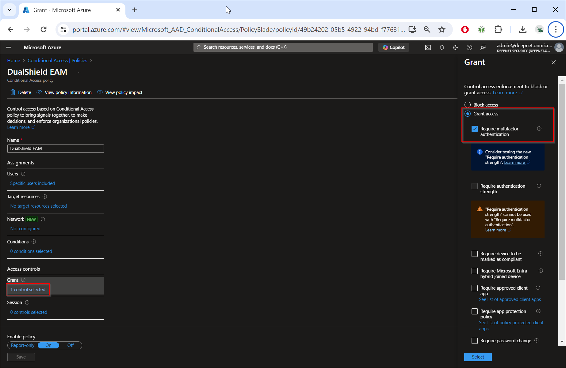 Select the "Grant access" option and check the "Require multifactor authentication" option.