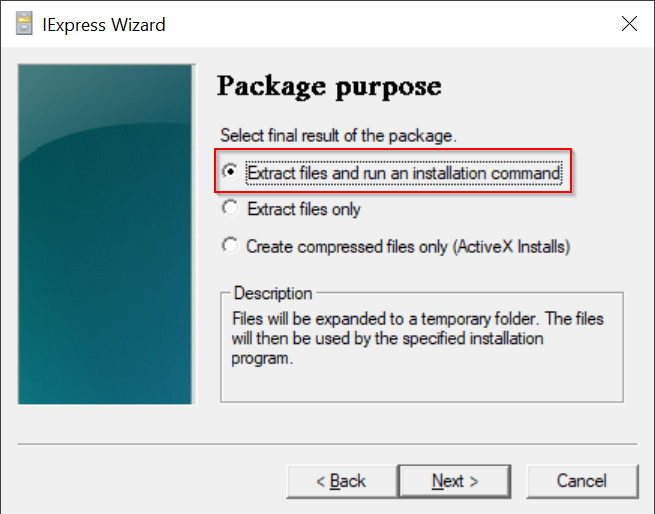 In the "Install Program" box, enter "cmd /c install-clo.bat"
