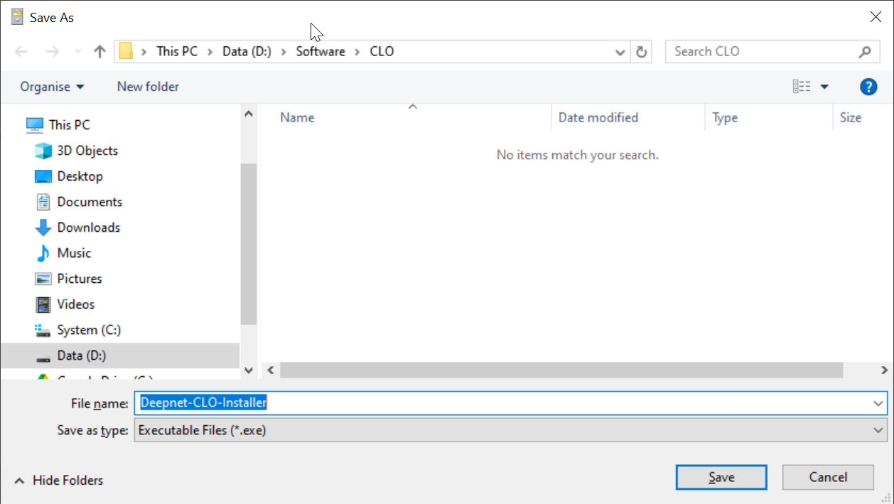 In the "File name" box, enter the name for your customer installer, e.g. Deepnet-CLO-Installer