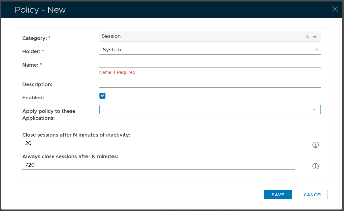 | Applications: | Optionally, you can bind the policy to a specific application or a list of applications. To specify the application(s), select the field: Apply policy to these applications If the field Apply policy to these applications is left empty, then the policy will be applied to all applications. |