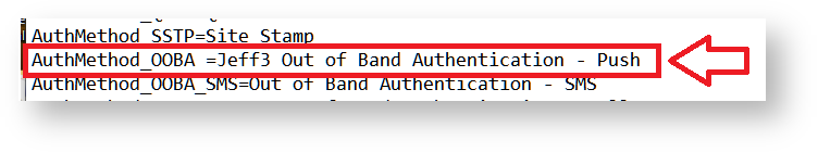To customise authentication method names you will need to examine the contents of this file and replace the existing prompts entered against the parameter for the specific authentication method that you want to customise (see table below for examples):