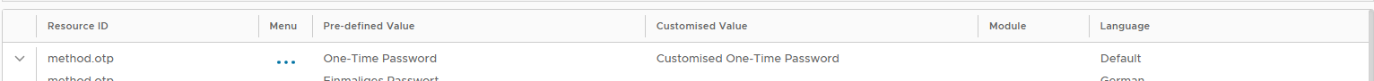 As an example to replace the default names for the authentication methods "One-Time Password" and "On-Demand Password" you would need to make the customisations to the resourced ID's "method.otp" and "method.odp";