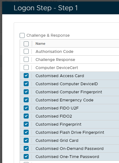 After customising the above authentication method names you will find the name changes reflected in the names presented in the management console;