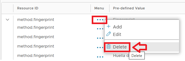 Given there are a large number of resources that need to be searched you are advised to use the filter "Free Text:" to limit the listed items using the values "One-Time Password" and "On-Demand Password" (either using the default value of the authentication method, or by supplying the resource ID).