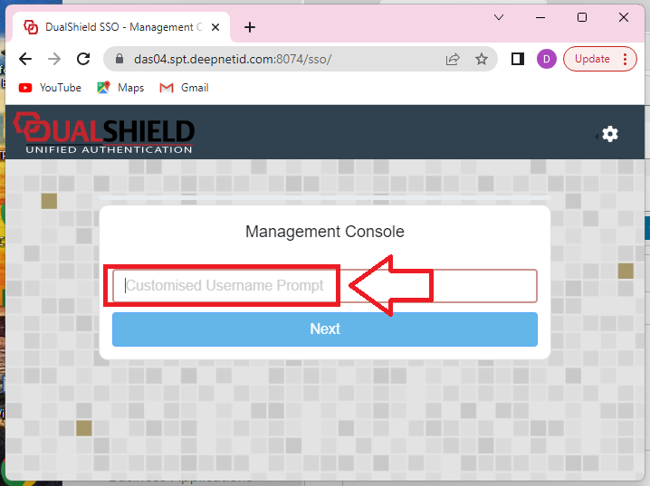 Example: Customising the Username Prompt when logging in to the Management Console: