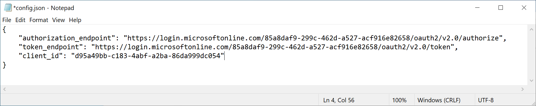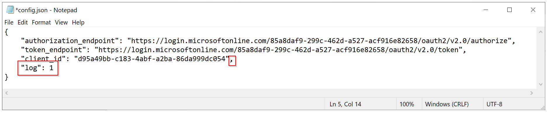 If the last lin is "client_id" : ..., then append a "," to the end of the line