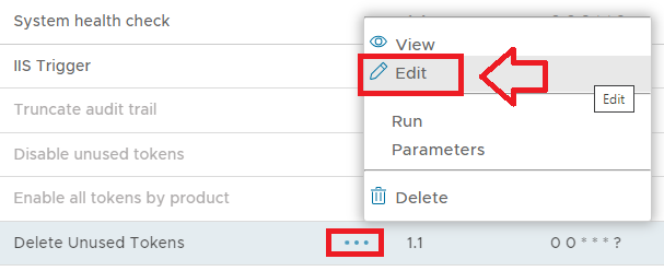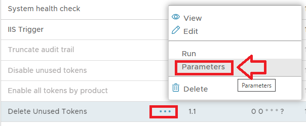 The task parameters are used by the task script to determine which tokens are to be deleted and are edited by left clicking on the context menu of the task and selecting "Parameters";