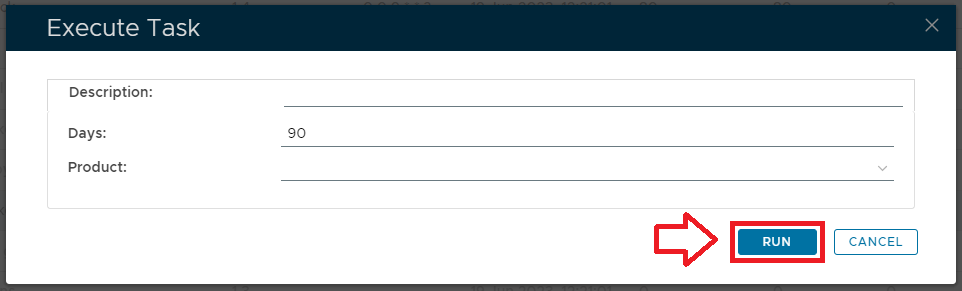 Before manually running the task the system administrator has the opportunity to temporarily replace these default values (the default values will return to their original state after the task has run).
