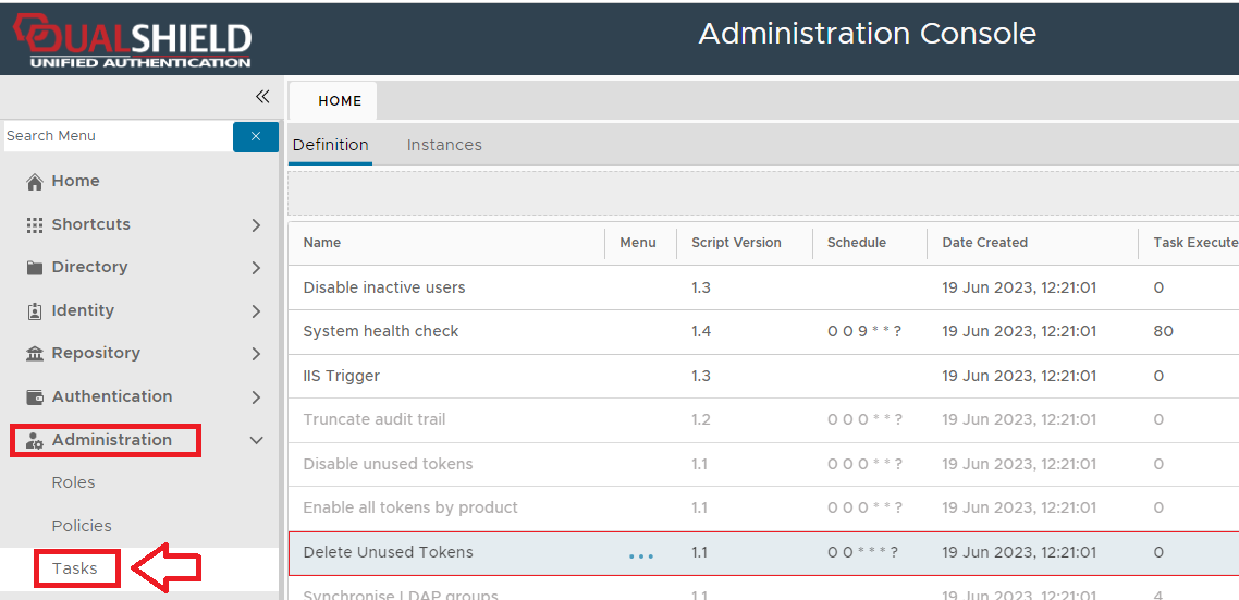 The task can be found by navigating to "Administration | Tasks", then scrolling down to the task "Delete Unused Tokens";
