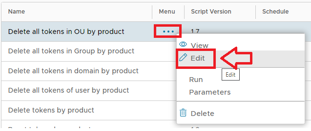 The task parameters are used by the task script to determine which tokens are to be deleted and are edited by left clicking on the context menu of the task and selecting "Parameters";