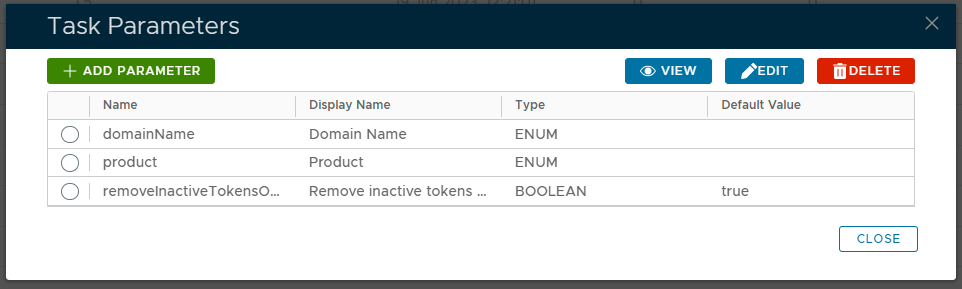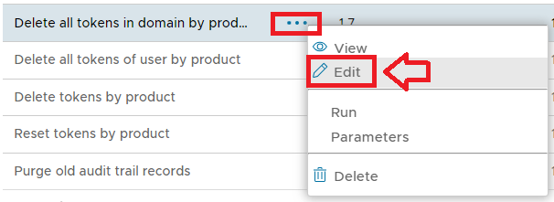 The task parameters are used by the task script to determine which tokens are to be deleted and are edited by left clicking on the context menu of the task and selecting "Parameters";