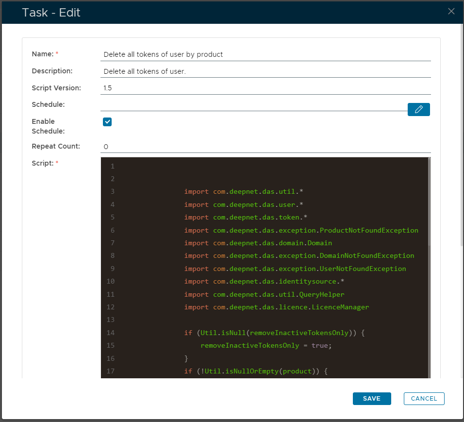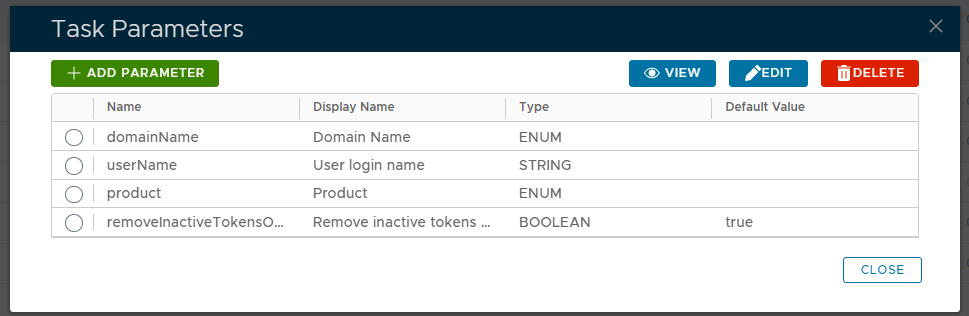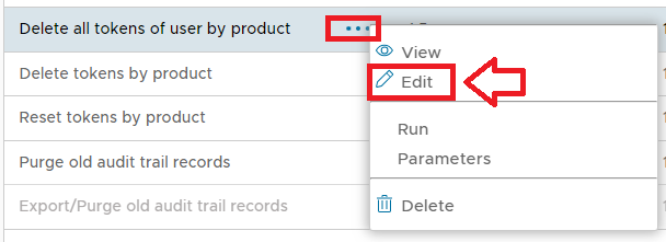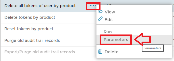 The task parameters are used by the task script to determine which tokens are to be deleted and are edited by left clicking on the context menu of the task and selecting "Parameters";