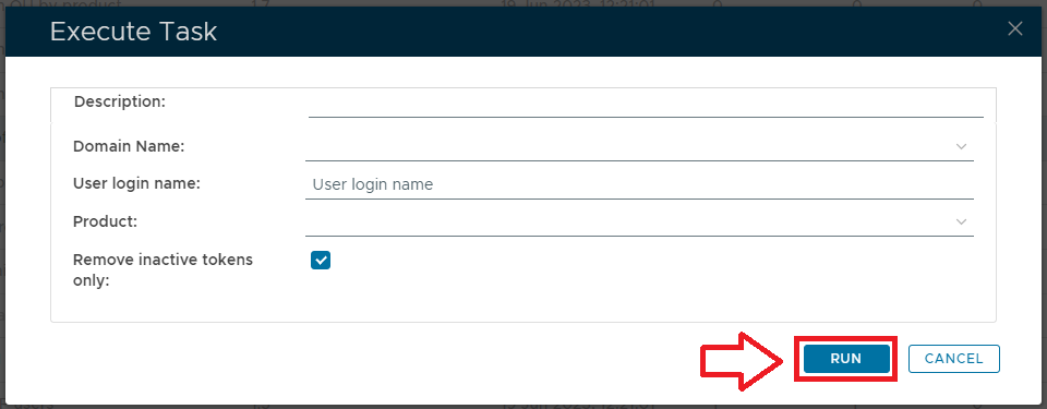 The purpose of this task is to remove all tokens from the token repository of a specific product and manufacturer, that have been assigned to a specific user (optionally, token deletion can be further restricted to inactive tokens).