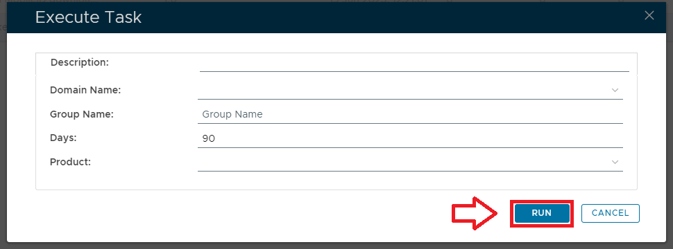 A new window will open titled "Execute Task" will then open (the window will be populated with the default task property values);